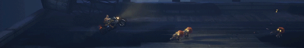 Now for something a bit different. Steel Rats™ blends genres in a way no game has before, infusing 2.5D stunt bike, racing action with precise platforming and intense vehicular combat.