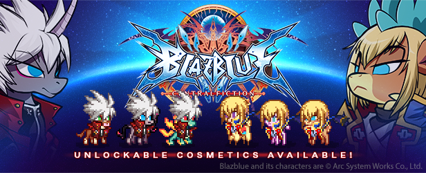 Owners of Blazblue Centralfiction on Steam automatically unlock exclusive Jin and Ragna cosplay items in the Pixel Lobby for all characters.