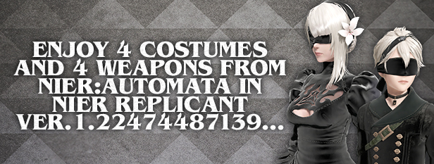 Enjoy 4 costumes and 4 weapons from NieR:Automata in NieR Replicant ver.1.22474487139....